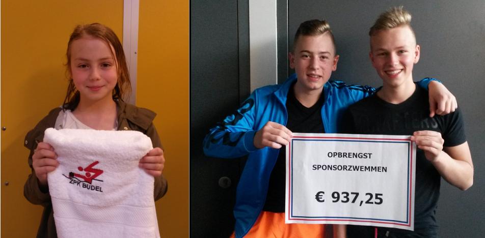 Onlangs organiseerde Zwem- en Poloklub Budel weer het jaarlijkse Sponsorzwemmen. Voor aanvang van deze activiteit gingen alle deelnemers op zoek naar vrienden en familie die hen wilden sponsoren. Er kon gekozen worden voor een vast bedrag of een bedrag per baan. Tijdens het Sponsorzwemmen was het vervolgens aan de zwemmers om zoveel mogelijk banen te zwemmen, om zo ook zoveel mogelijk geld op te halen. En dat lukte behoorlijk! De 45 deelnemers wisten samen in een uur tijd namelijk 83.950 meter te zwemmen, wat goed was voor een totaalbedrag van € 937,25. Super goed gedaan! Een extra pluim gaat naar Noor Segers die in haar eentje 3.050 meter zwom en daarmee maar liefst € 183,- op wist te halen. De meeste aantal banen werden gezwommen door Jasper Thielens en Ruben Smit. Zij wisten ieder 3.550 meter te zwemmen. Deze drie kanjers werden dan ook extra in het zonnetje gezet met een leuk cadeautje, mede mogelijk gemaakt door de familie Gerlings van Agrarisch bedrijf Baronie Cranendonck.