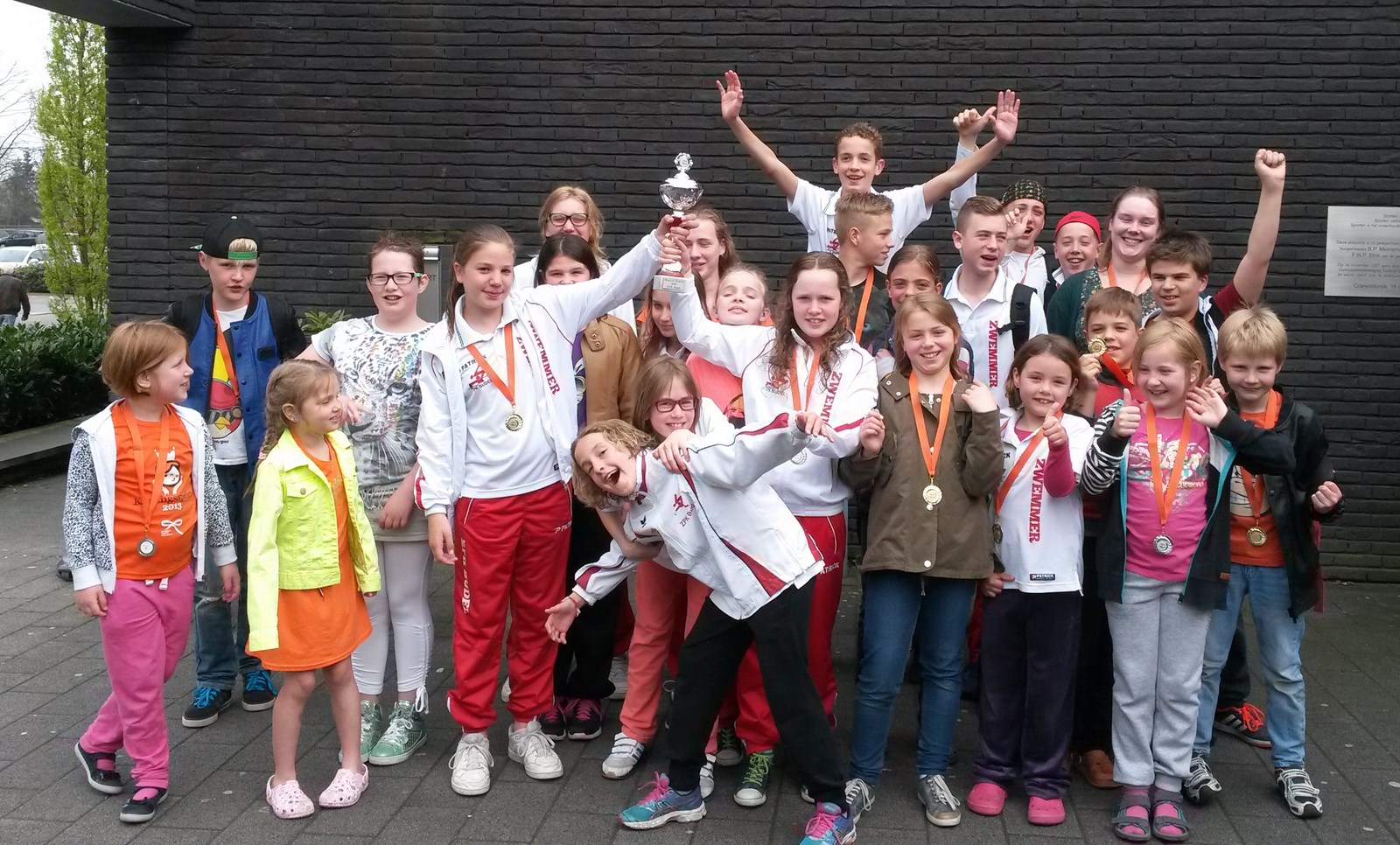 Ook trots waren de coaches op de jonge pupillen die hun eerste wedstrijd zwommen. Zo was het voor de 6-jarige Nina van de Moosdijk en de 7-jarige Janneke Thielens de eerste keer dat ze aan de startblokken mochten verschijnen, maar ze brachten het er prima vanaf. Ze wisten zelfs de derde en vierde plaats in hun leeftijdscategorie te behalen! Maar ze waren niet de enigen die flink scoorden. Een gouden medaille werd immers behaald door: Annabel Vluggen, Stijn Lukken, Marie Schuurmans, Merlin Meurkens, Daan Sopar, Noor Segers, Dario Alvaro, Kirsten Lenders, Tygo van Rixtel, Quint van Rixtel en Jasper Thielens. Het zilver ging naar: Sanne van Rooij, Fleur Slegers, Ilse van Rooij, Darwin Wouters, Kyra Meurkens, Jesse Thielens, Neel Steensels, Ruben Smit en Joyce Raemaekers. En het brons ging naar huis met: Nina van de Moosdijk, Anouk van Nijmweegen, Britt Slegers, Robin Sopar, Jonie Meurkens en Carola Hompes. U begrijpt, veel medailles voor de concurrenten bleven er niet over. Het was dan ook een snel uitgemaakte zaak dat de Oranje Trofee ook dit jaar weer naar ZPK Budel ging! Allen van harte gefeliciteerd!